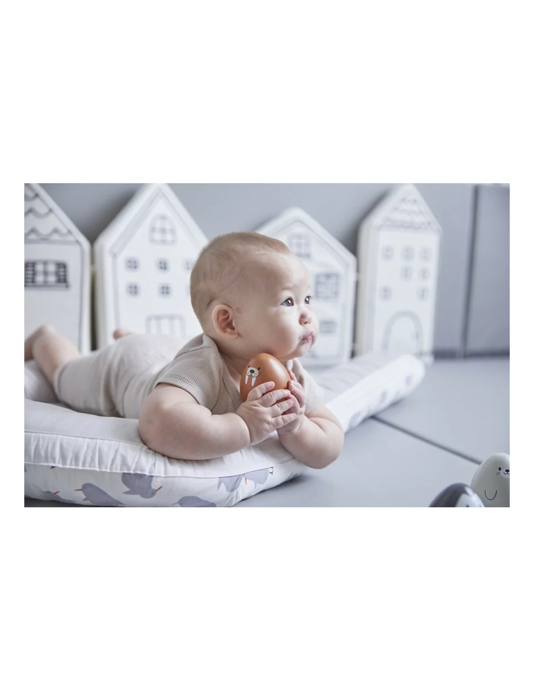 Tato hračka podporuje zrakový vývoj dítěte a zároveň ideální společník pro čas strávený na bříšku. Využijte mrože pro volnou hru a vyprávění příběhů, zároveň pro podporu jemné motoriky.