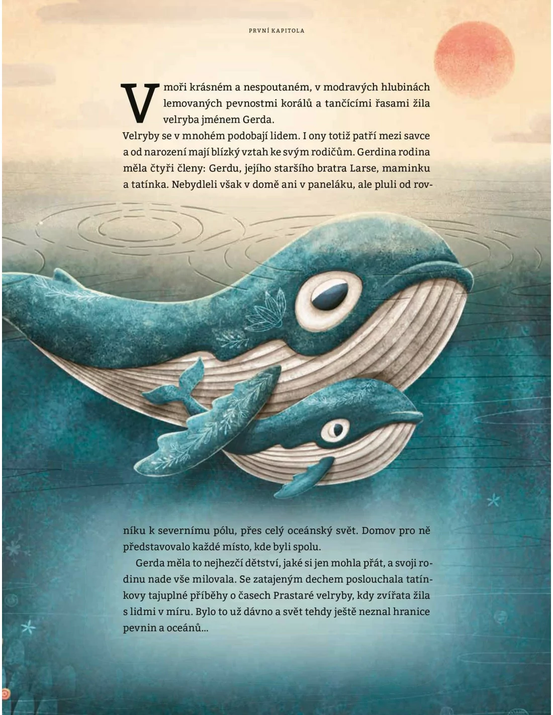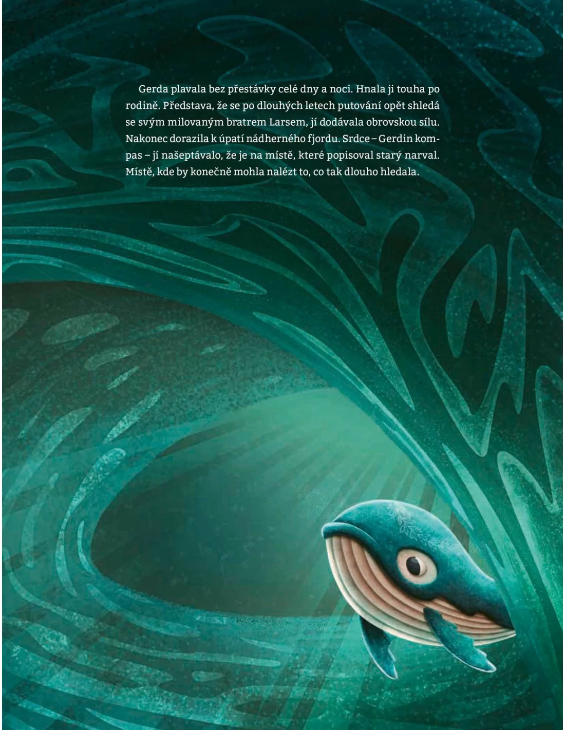 Malá velryba Gerda si užívá spokojené dětství. Jednou se však přihodí něco nečekaného a Gerda zůstane sama, bez rodiny. A tak osamocená a smutná bloudí oceánem, až nakonec potká nové přátele. Kosatky, tučňáky, racky nebo třeba chobotnice. Od každého kamaráda se dozví nejen zajímavosti o jejich životě, ale především o fascinujícím světě, kterým proplouvá. Najde nakonec malá Gerda to, co hledá?