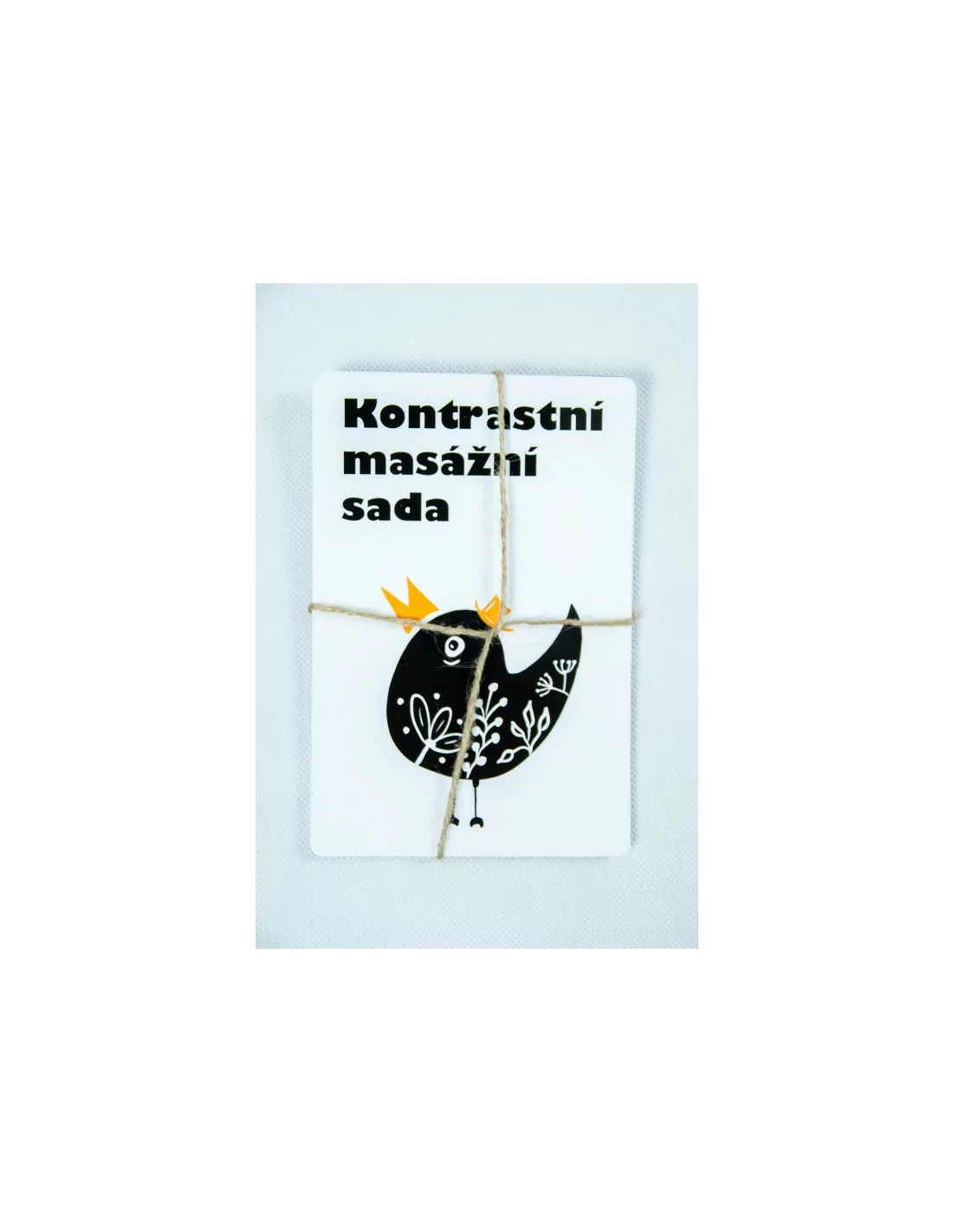 Kontrastní kartičky mají na své zadní straně vytištěny říkanky spolu s pokyny, jak vykonávat masážní tahy. Říkanky jsou krátké a výstižné a tak rodiče nebudou mít problém se je naučit. Masážní tahy vycházejí z metodiky masáží pro nejmenší děti.