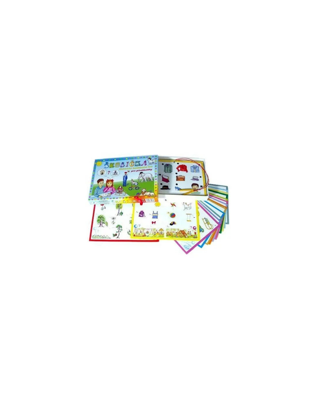 Obsahuje 16 listů se 176 obrázky, mezi nimiž děti hledají souvislosti. Každý list je zaměřen na určitou oblast dětského světa.