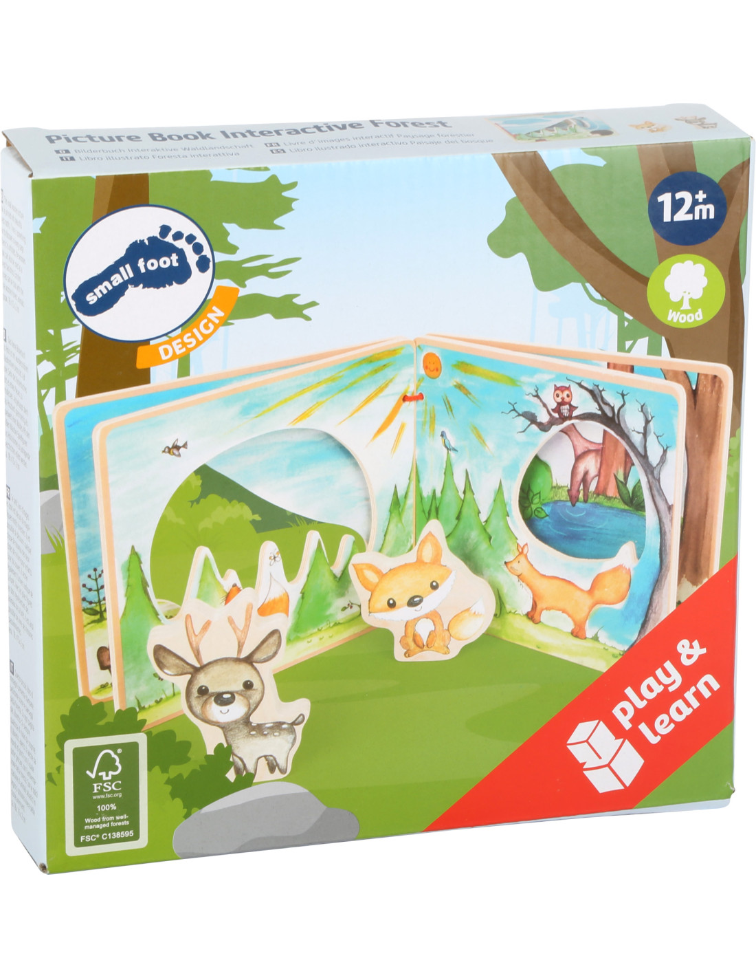 Interaktivní dřevěná obrázková kniha s motivem lesní krajiny jistě zaujme nejenom ty nejmenší průzkumníky, ale i jejich starší kamarády. Hlavní hrdinové knihy, dvě zvířátka - dobrodružná liška a zvědavý jelen, vezmou malé "čtenáře" do lesního světa společně budou objevovat faunu a flóru.