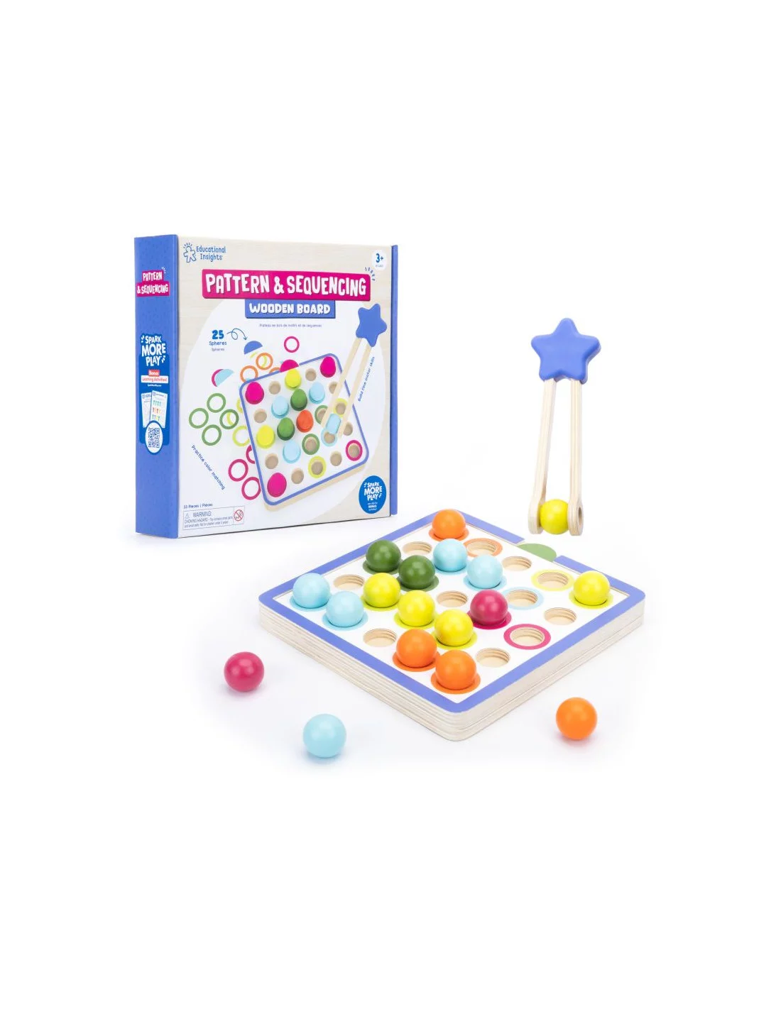 Rozvíjejte jemnou motoriku, zdokonalujte vzorování, řazení, či přiřazování barev za pomoci Dřevěné desky - vzory a sekvence, pocházející z dílny oblíbené britské vzdělávací značky Learning Resources.