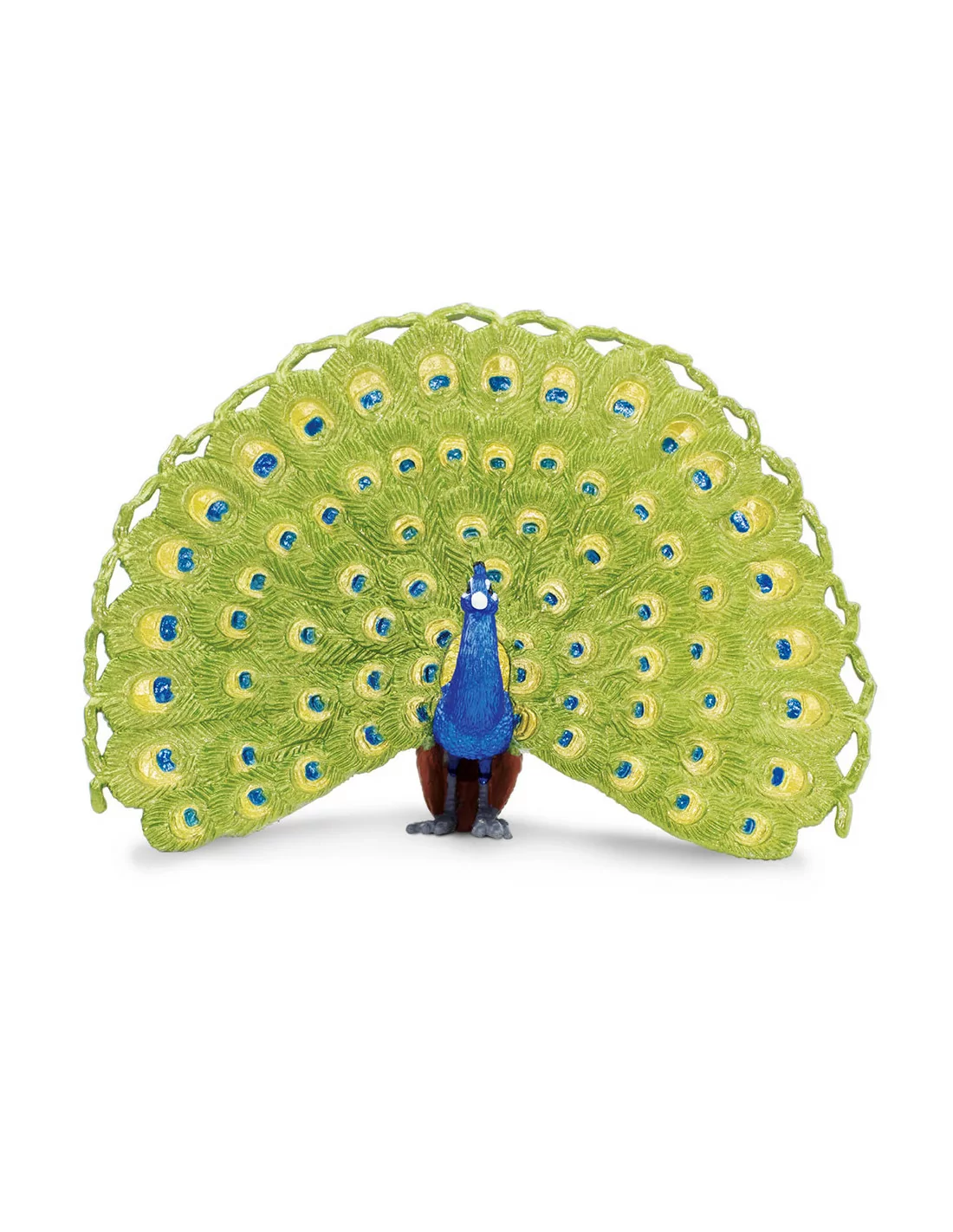 Figurka páva, národního ptáka Indie, který je známý pro své obrovské, pestrobarevné ocasní krovky. Samci mohou i s touto "vlečkou" měřit až přes 2 metry. Působivé zobrazení nad ocasním peřím samce slouží především k přilákání samice. Její zbarvení není tak pestrobarevné, převážně je hnědošedé.