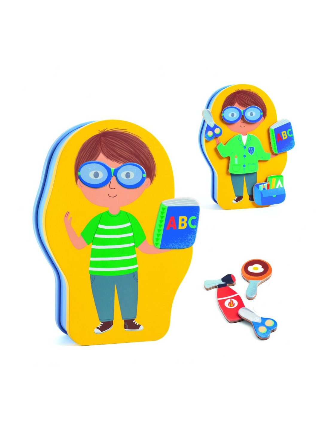 Obě dvě strany plechové krabičky znázorňují postavu, na kterou přikládáte části s magnetickou folií. Kombinujte různé doplňky a vytvářejte tak různé a zábavné variace povolání. Jakmile vás hra přestane bavit, jednoduše složte všechny dílky zpět do praktické krabičky.