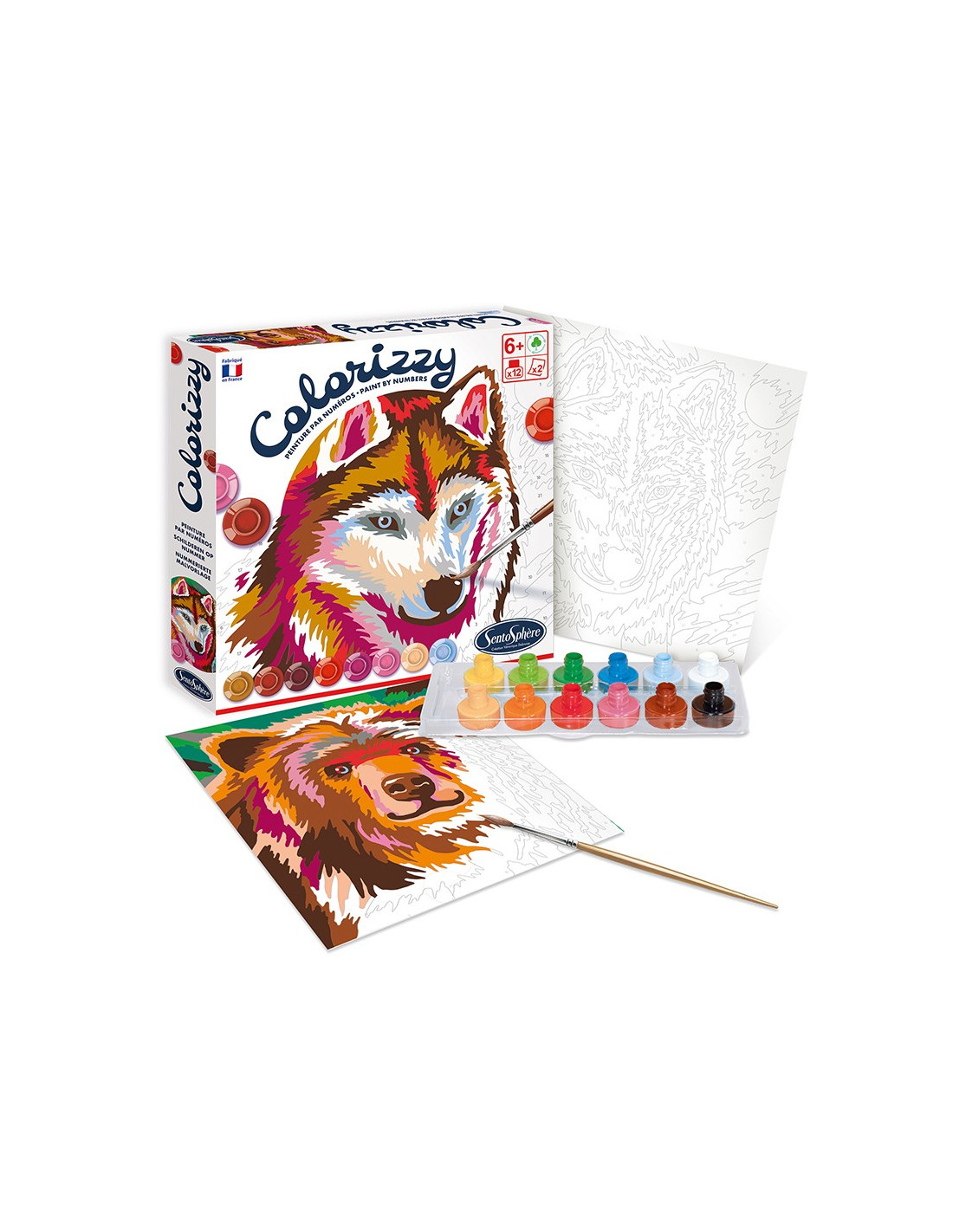 Užijte si techniku malování podle čísel. Postupujte podle čísel vytištěných na plátně a díky dodaným akrylovým barvám oživte krásného medvěda a vlka. Jak? Se sadou COLORIZZY - Zvířata lesa, pocházející z dílny francouzské značky Sentosphere to půjde snadno a zábavně.