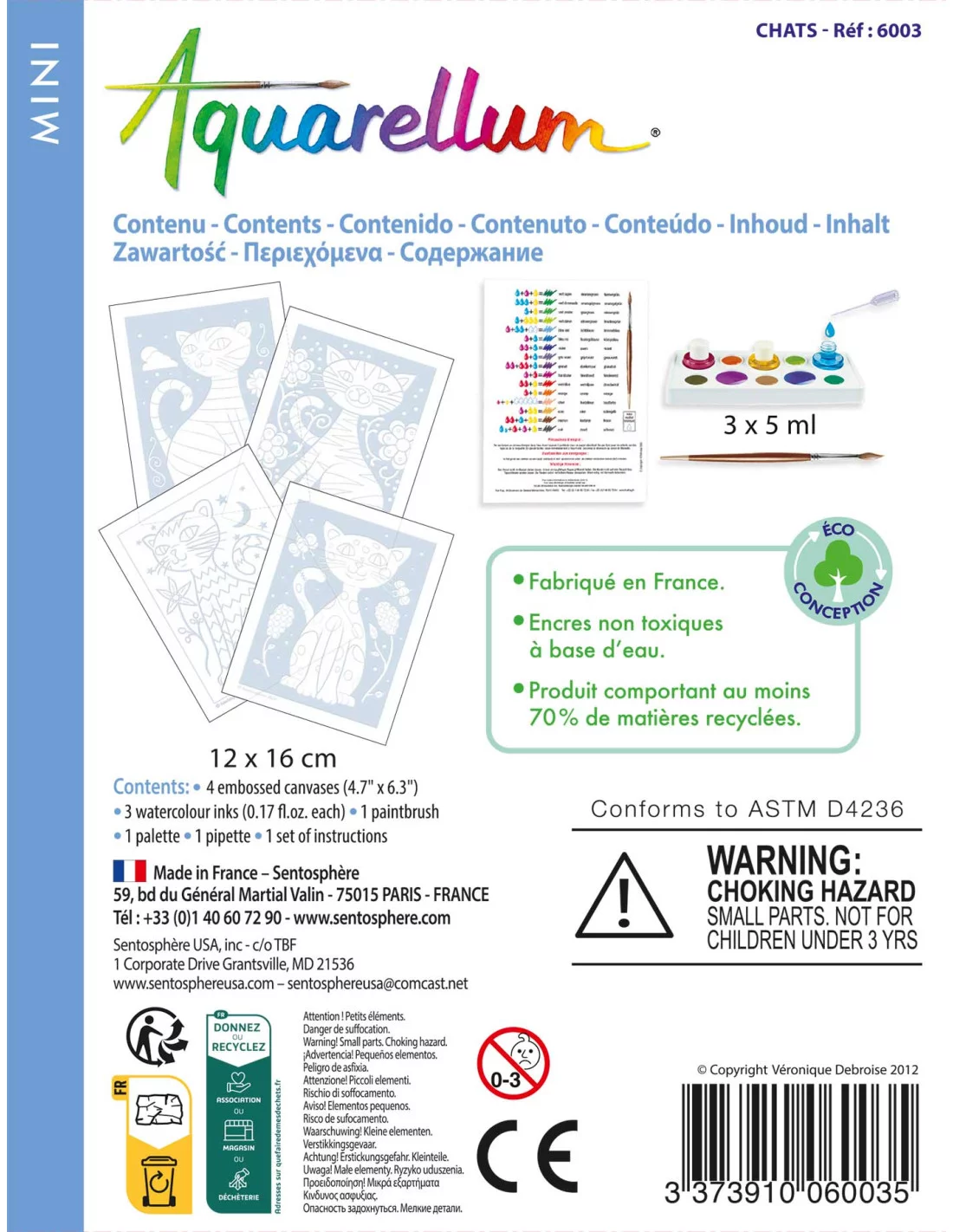 Vytvořte originální umělecké dílo a vdechněte nádherným kočkám život. Kreativní sada Aquarely mini - Kočky, pocházející z dílny velmi oblíbené a kvalitní značky Sentosphere vás provede krok za krokem technikou malování akvarelem a mícháním barev.
