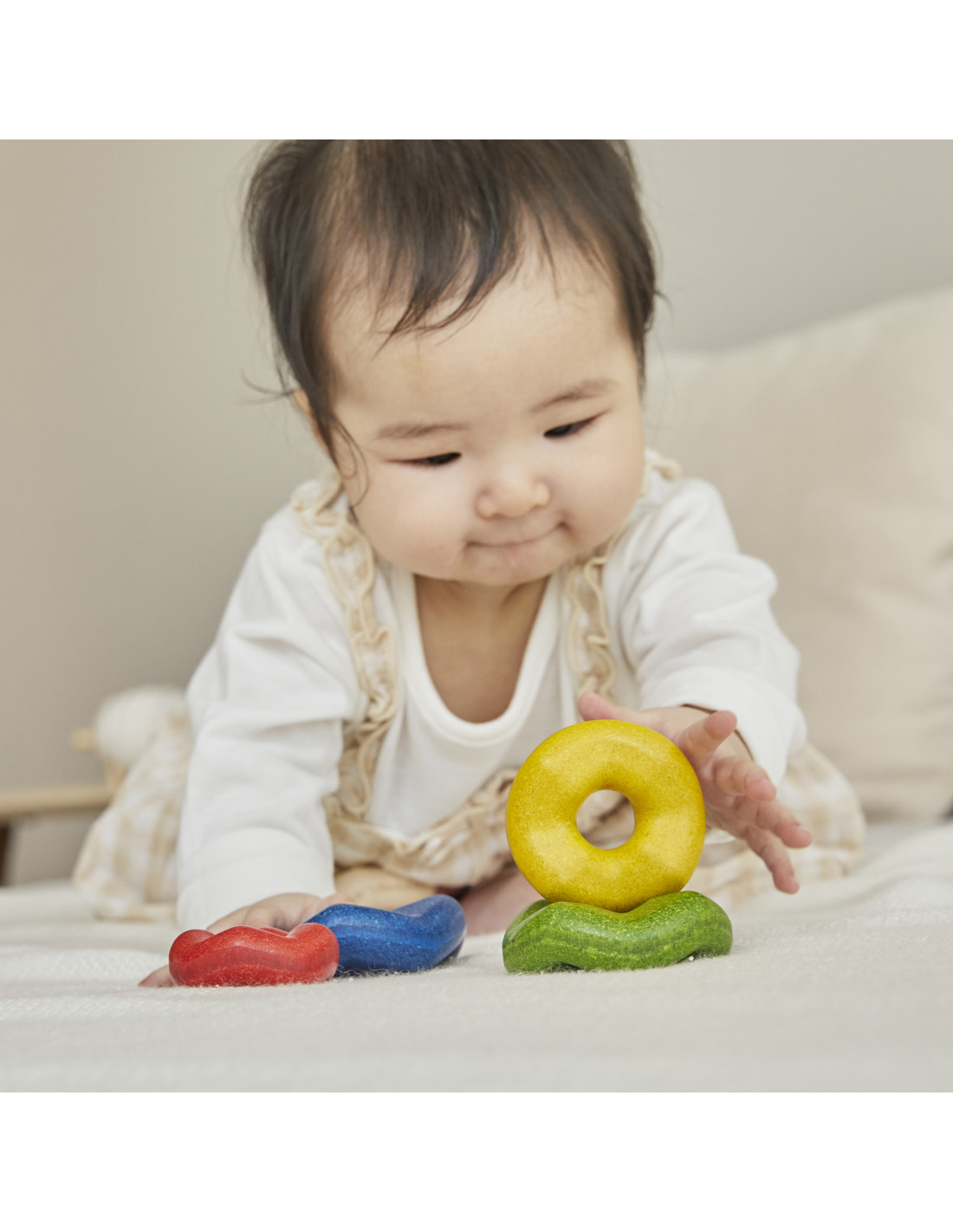 Rozvíjejte motorické dovednosti hravým způsobem! S pomocí kaučukové vzdělávací hračky Stohování - zvlněné kroužky, pocházející z dílny ekologické značky PlanToys vám to půjde snadno a zábavně.