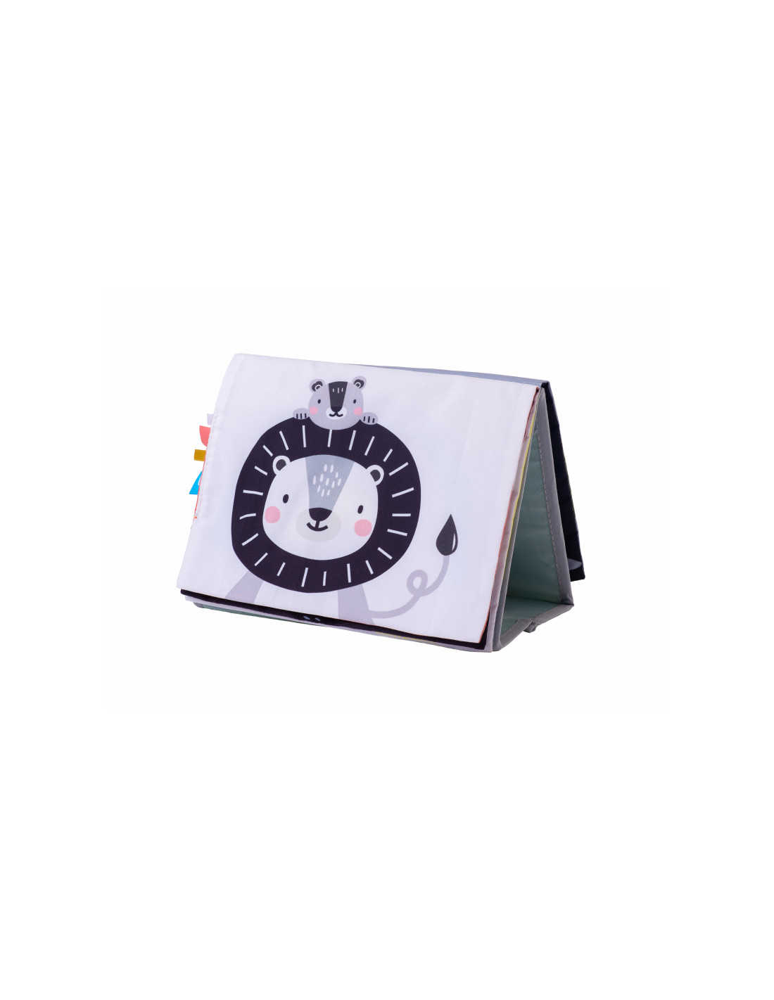 Textilní knížka značky Taf Toys je díky svému tvaru ideální pro postavení před dítko při hře na bříšku. Knížka ve tvaru stolního kalendáře zaručuje dítku kvalitní zábavu a zároveň podporu v rozvoji jeho zraku a komunikačních dovedností.
