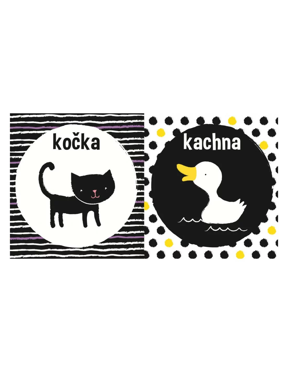 Jednotlivé knížky mají oblé hrany a díky pevným stránkám vydrží i mnohdy méně šetrné zacházení malých dětí, do jejichž ručiček krásně padnou. Knížky jsou vyhotovené v černobílé variantě a jemnými barevnými prvky, což je pro správný vývoj zraku malého miminka daleko vhodnější, než pestrobarevné obrázky. Naleznete zde jak obrázky zvířátek, či předmět, tak i obrázky miminek v různých situacích, či jednotlivé části obličeje.