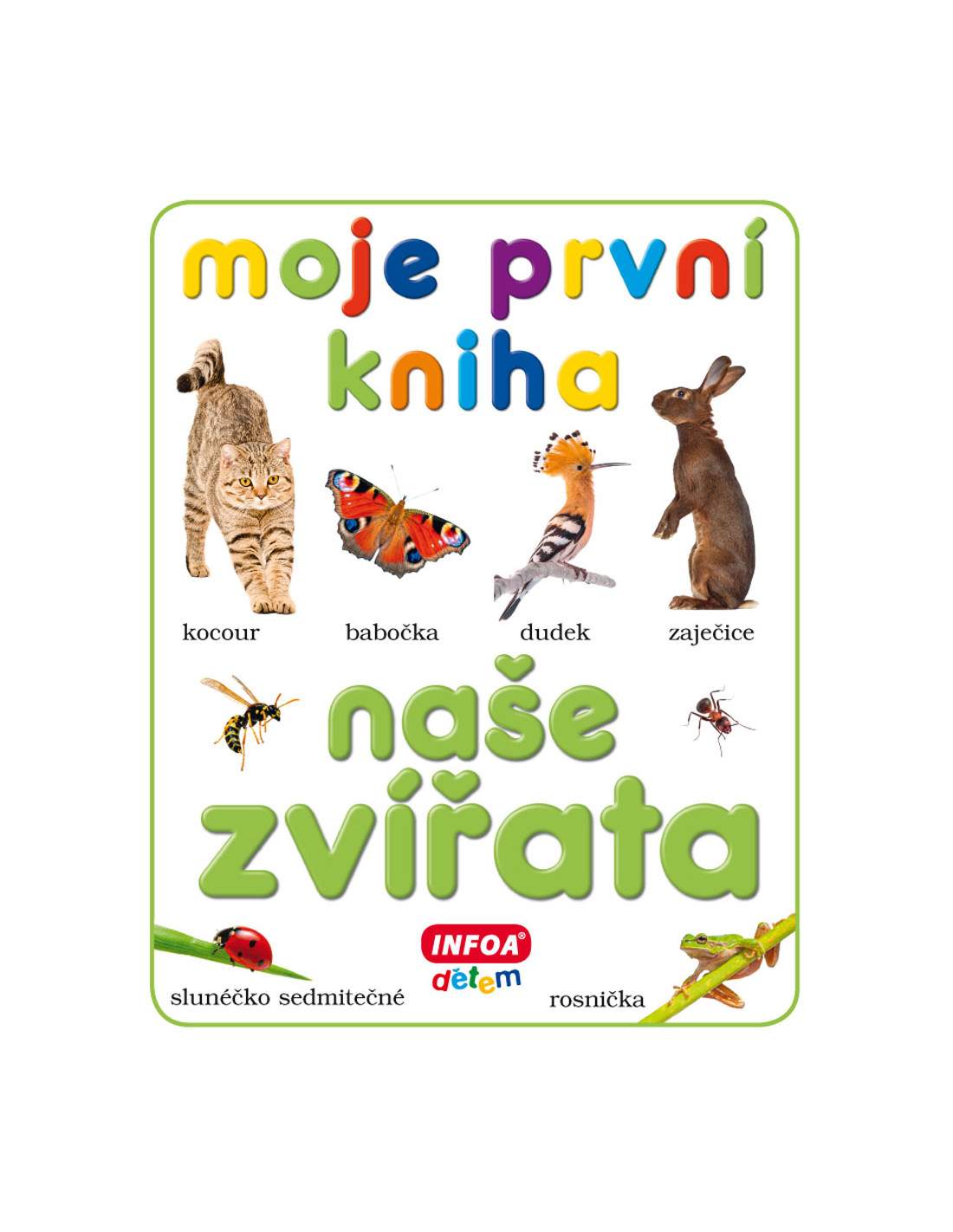 Krásné leporelo Moje první kniha - Naše zvířata, vycházejí pod značkou INFOA, obsahuje mnoho barevných fotografií zvířat.