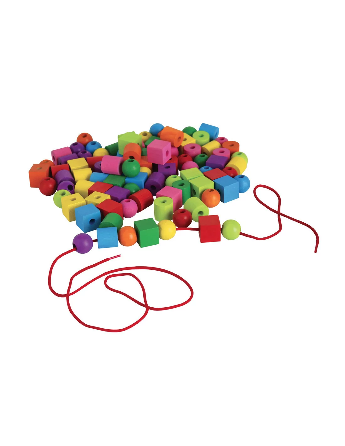 Dřevěné maxiperle různých tvarů a barev o průměru 2 cm jsou ideální pro první navlékání malých dětí. Sada obsahuje rovněž šnůrku na navlékání. Vše je uloženo v plastovém kbelíku.