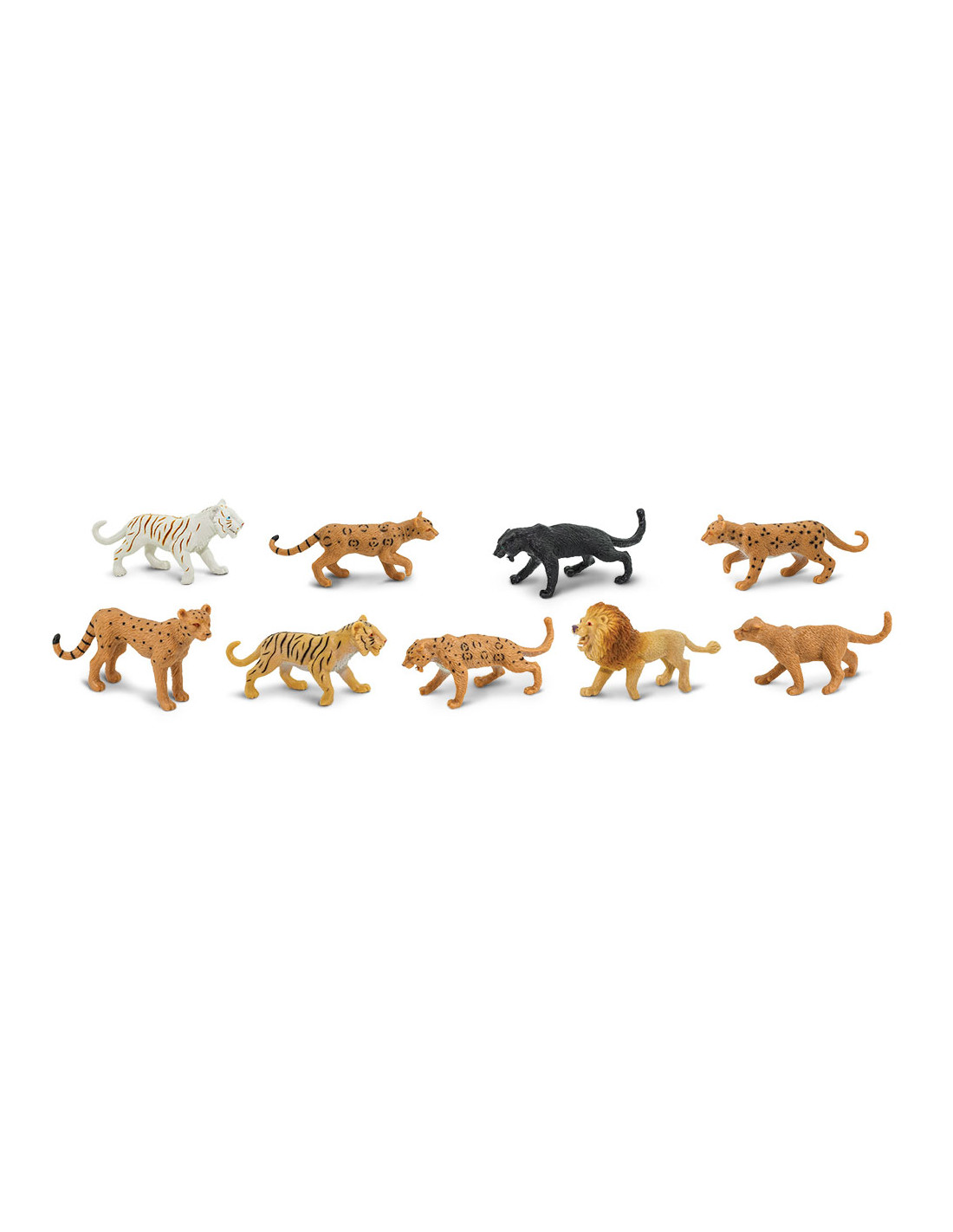 Ručně malované figurky velkých kočkovitých šelem vyvedené v detailech dokáží dítěti pomoci rozeznat typické znaky jednotlivých kočkovitých šelem.