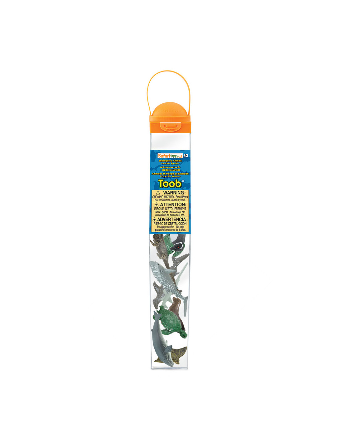 Tuba obsahuje 10 figurek ohrožených druhů zvířat, které můžeme nalézt v moři a oceánu. Naleznete zde žraloka velrybího, karetu pravou, tučňáka galapážského, pilouna, kladivouna velkého, sibu skvrnitou, leguána mořského, plejtváka obrovského, karetu menší a lachtana.