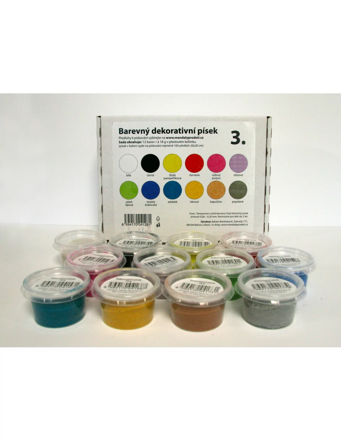 Tvořte barevné pískové obrázky a nechte tak vzniknout krásná umělecká díla. S touto sadou dekorativních písků, která obsahuje celkem 12 barev, to půjde snadno. Podporujte tak kreativitu, zručnost, jemnou motoriku, trpělivost a trénujte poznávání barev.