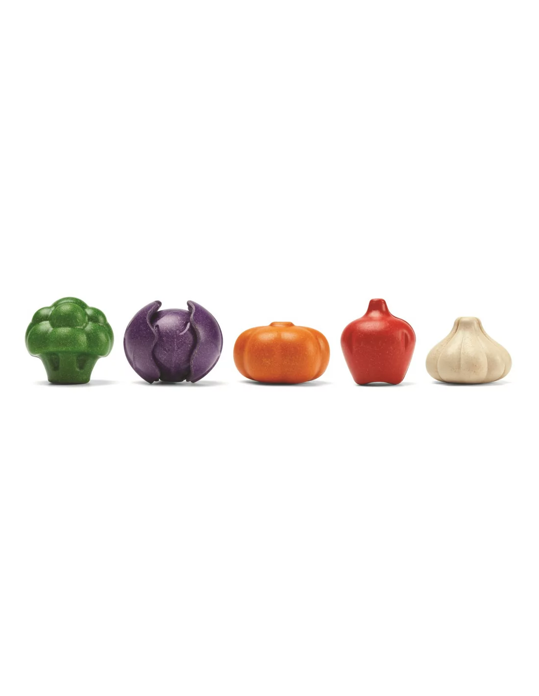 Tuto nádhernou dřevěnou sadu dodáváme s nožem a 5 druhy zeleniny: brokolicí, paprikou, dýní, česnekem a červeným zelím. Každý kus této zeleniny se dá rozkrojit, děti se tak mohou učit o přínosech každé barevné zeleniny.