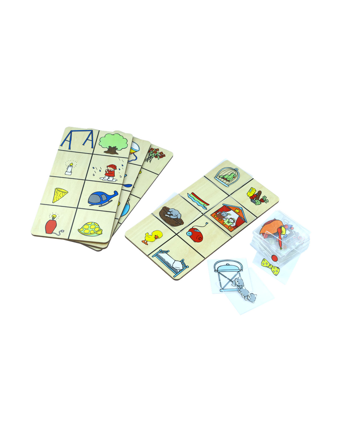 - Vzdělávací přiřazovací sada s dřevěnými obrázky a průhlednými kartičkami