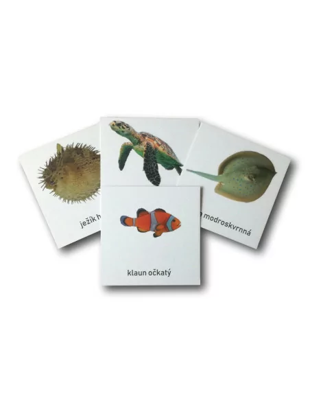 Třísložkové karty jsou doplňujícím materiálem k Safari Ltd. sadě figurek Mořský útes.