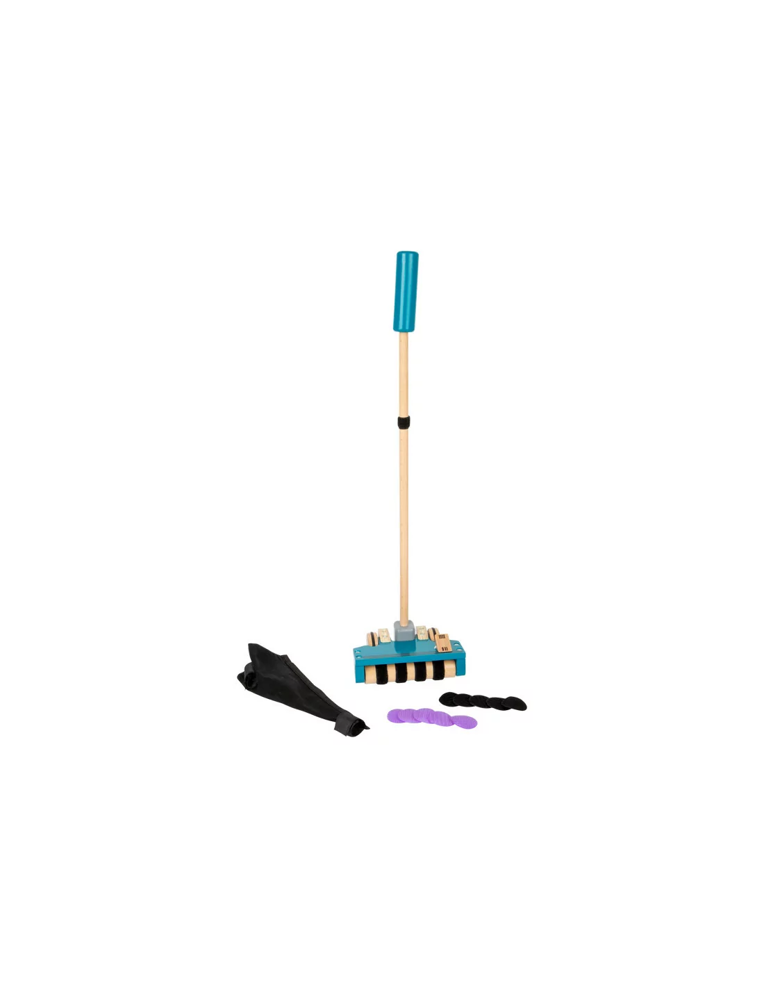 Mějte s dětmi společnou radost z domácích prací. Tento dřevěný vysavač je ideální pro malé dětské ruce, snadno se drží a ještě snadněji používá. Čeká vás realistický zážitek z hraní! Jaký je jeho princip? Díky fleecovým proužkům, připevněných na válec vysavače děti optimálním způsobem "vysávají" barevné kousky suchého zipu (nečistoty) umístěné na podlaze. Tyto kousky jsou pak bezpečně uloženy ve vakuovém sáčku se zapínáním na suchý zip Skvělá hračka na zlepšení dětské zručnosti.