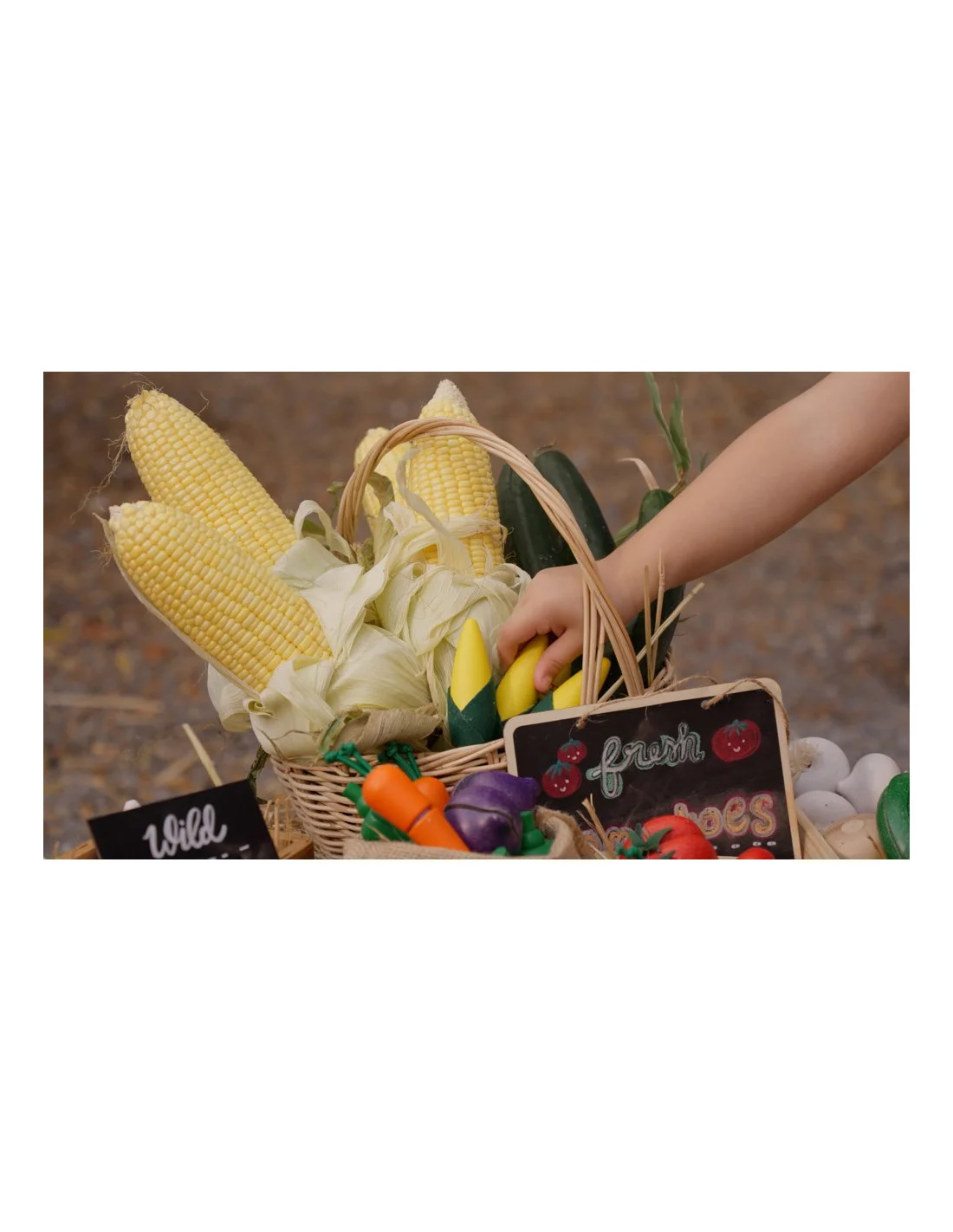 Dřevěná zelenina v pestrých barvách, ideální pro nápaditou hru, rozvoj jemné motoriky a koordinace oko-ruka dětí již od 18 měsíců.