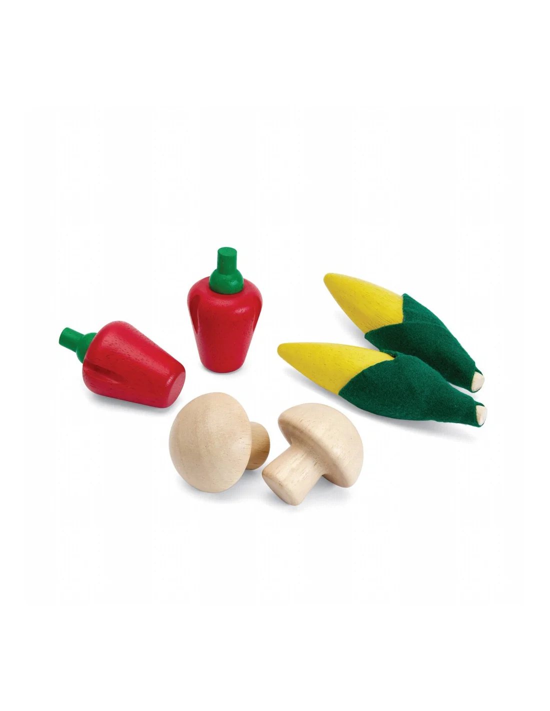 Dřevěná Sada čerstvé zeleniny, pocházející z dílny oblíbené ekologické značky PlanToys podporuje fantazii dětí, jemnou motoriku, koordinaci oko-ruka, či rozvoj řeči.