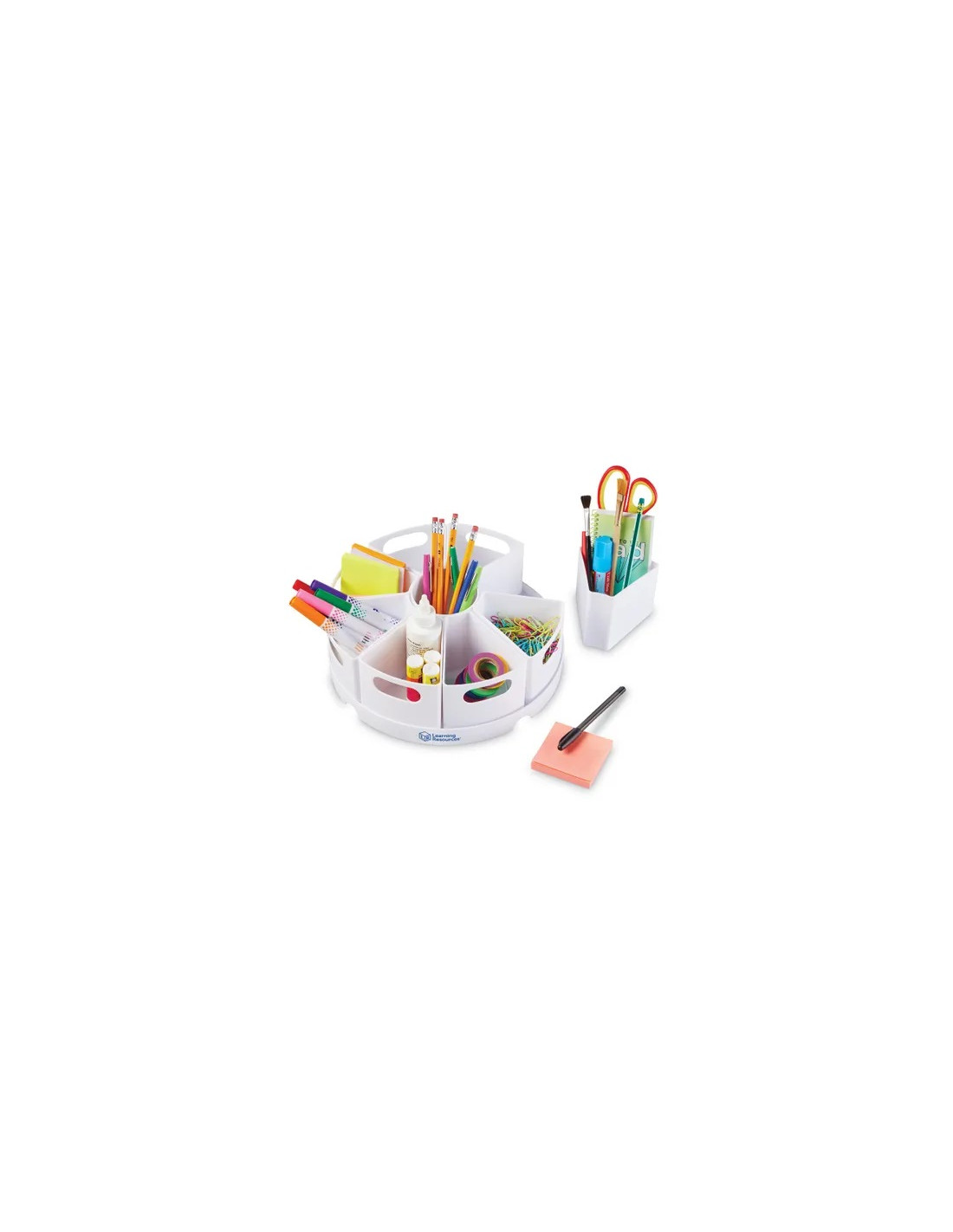 Snadno přenosný organizér je ideální pro použití doma i ve třídě. Na snadno uchopitelné, kruhové úložné centrum ve stylu kolotoče se vejde celkem osm odnímatelných úložných zásobníků na psací potřeby, lepicí tyčinky, či lepidla.