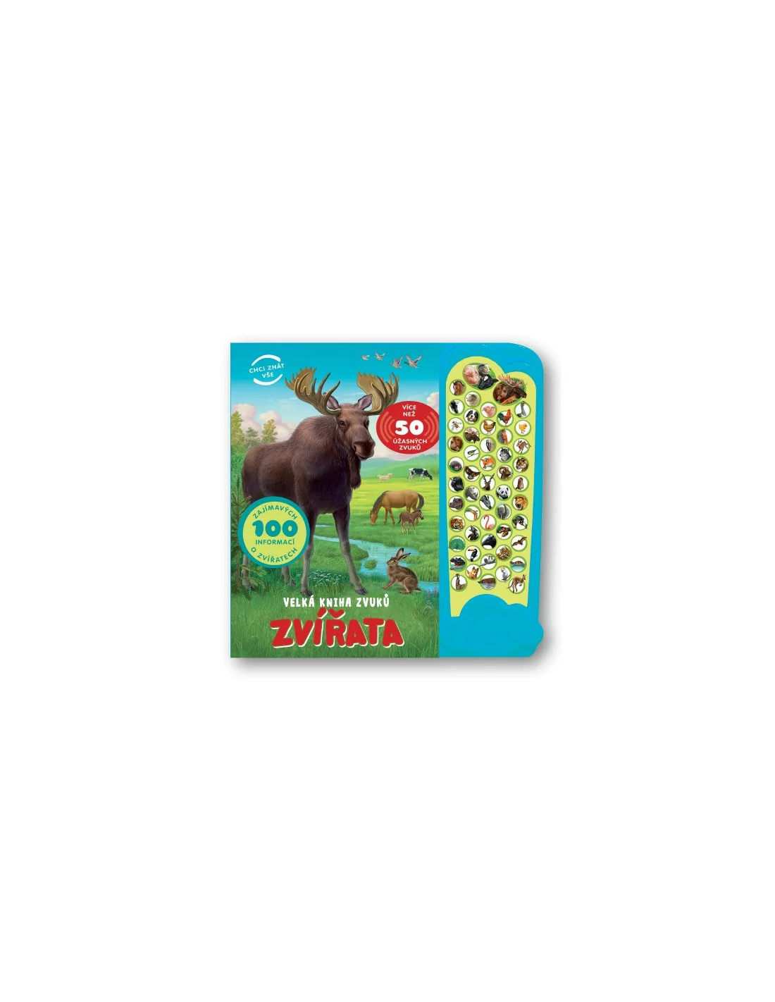 "Velká kniha zvuků - Zvířata" obsahuje nepřeberné množství informací o nejrůznějších zvířatech, ať už jsou malá, nebo velká, divoká a nebo domácí. Malé čtenáře nadchne tato kniha především díky zvukovému modulu, který obsahuje více než 50 zvuků a děti se tak snadno naučí řeči zvířat.